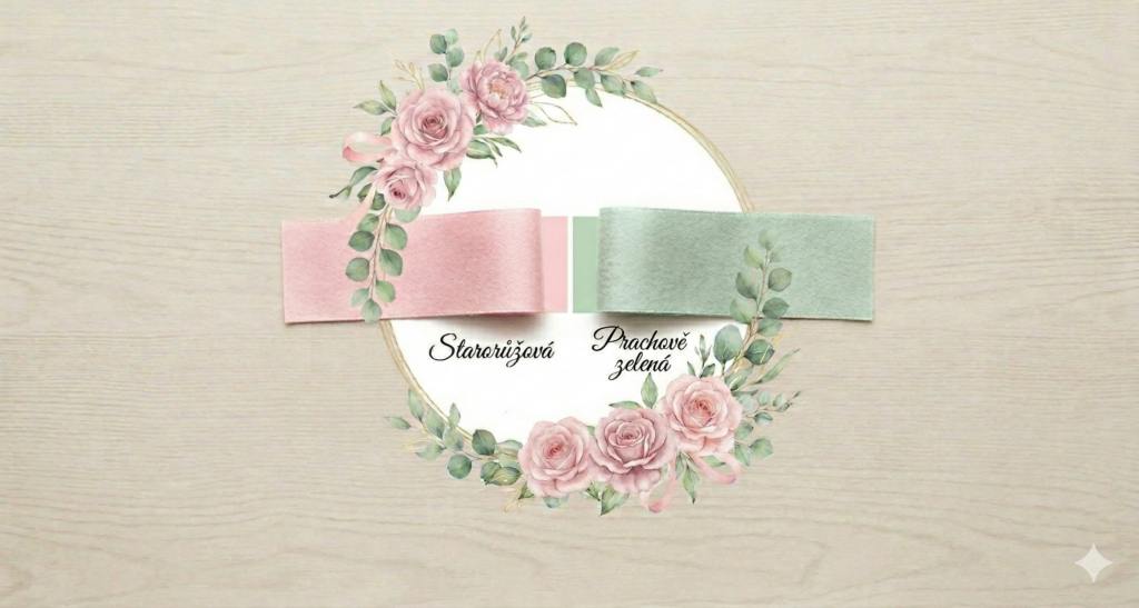 Barvičky pro svatbu Klárka vybírala poctivě a dlouho, takže pokud chcete udělat nevěstě radost, laďte svoje oblečení do světlých odstínů růžové a zelené. Pro vyznavače počítačové grafiky #E5BDBA a #B7B8AB.